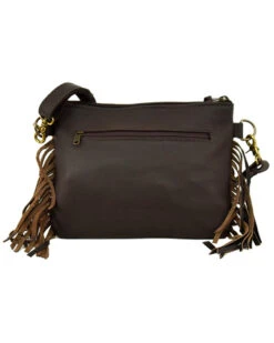 - Black with leather lacing and flowing fringe