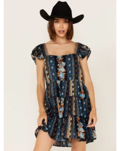 Band Of The Free Women’s River Of Dreams Stripe Floral Print Tiered Dress