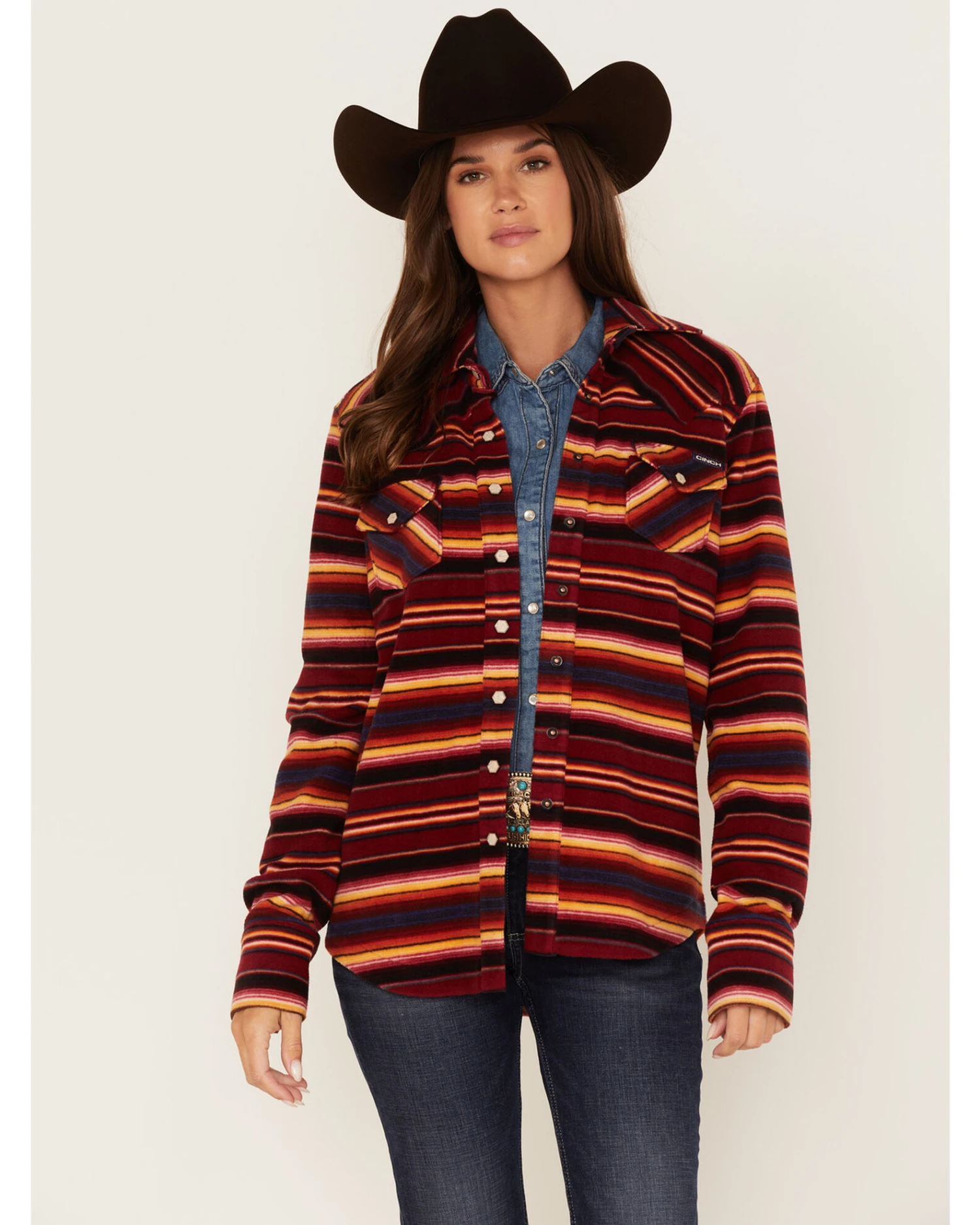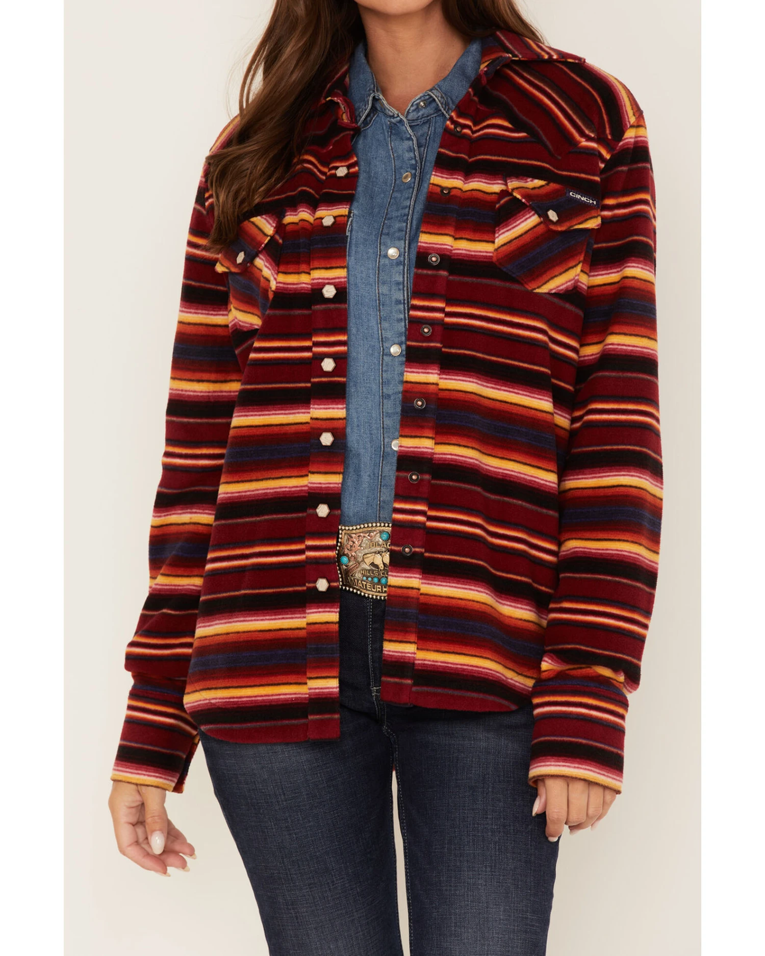 Cinch Women’s Serape Stripe Fleece Western Snap Shacket