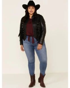 Liberty Wear Women’s Black Fringe Snap Sheep Napa Jacket – Plus