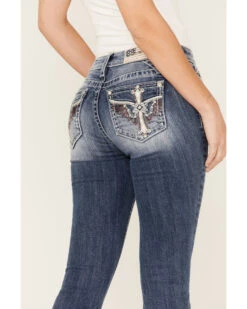 Miss Me Women’s Medium Wash Mid Rise Americana Wing Cross Rhinestone Bootcut Jeans
