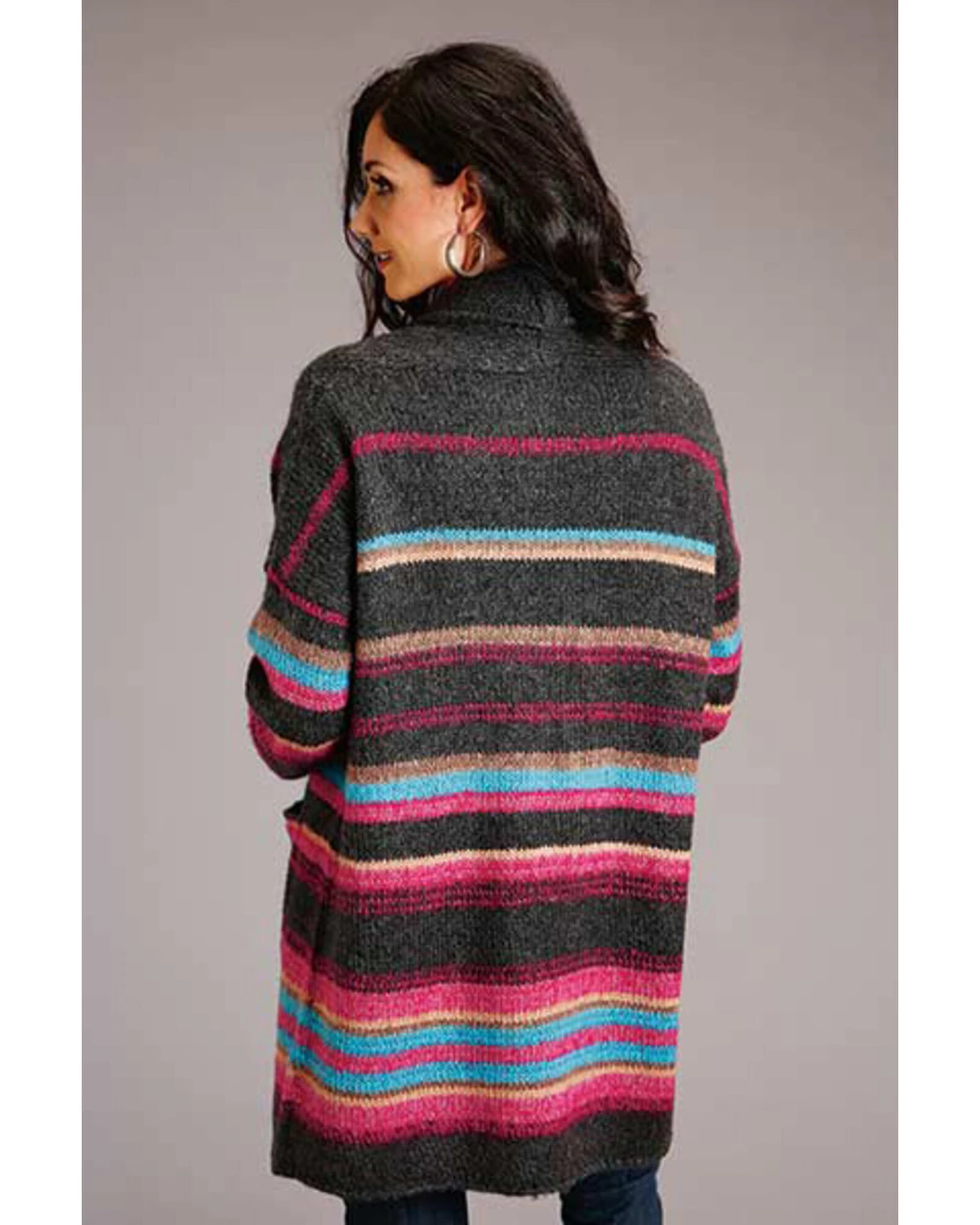 Stetson Women’s Striped Oversized Knit Open-Front Cardigan