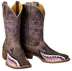 Tin Haul Women’s Man Eater Shark Western Boots – Square Toe