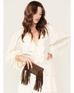 Vintage Boho Bags Women’s Fringe Luxury Designer Monogram Logo Wristlet